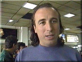 3 pictures from the departure of the group for Dhualagiri left: the leader of the expedition antonis Sykaris, while describing the trip to the top, for Oreivatein right: the photo of the 7 finally travelling (Panagiotis Avgerodimos and Stavros Lazaridis will not participate after all): George Voutiropoulos, Xharalambos Tsoupras, Alexandros Bougiouklou, Dimitris Kallos, Kostas Routsias, Nikos Papandreou, Antonis sykaris. down: Kostas Routsias and ...Oreivatein, from the news-clip of SKAI TV. | ||
